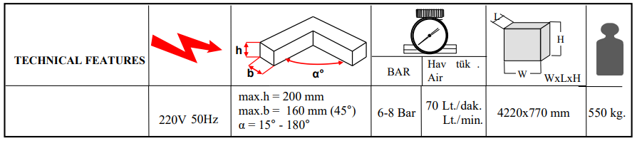 Apertura de boca para soldado de perfiles de hasta 200mm de altura.