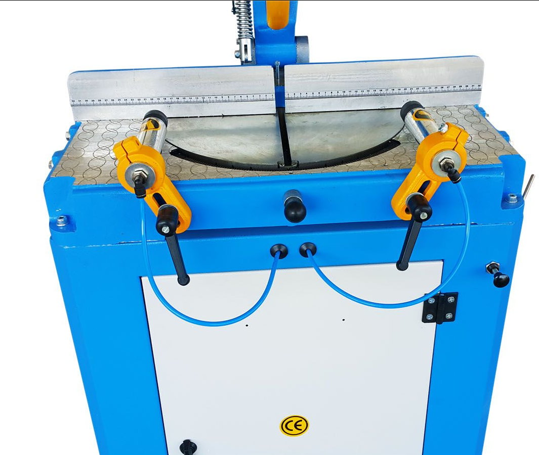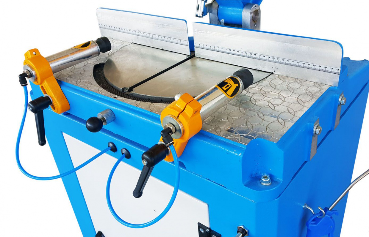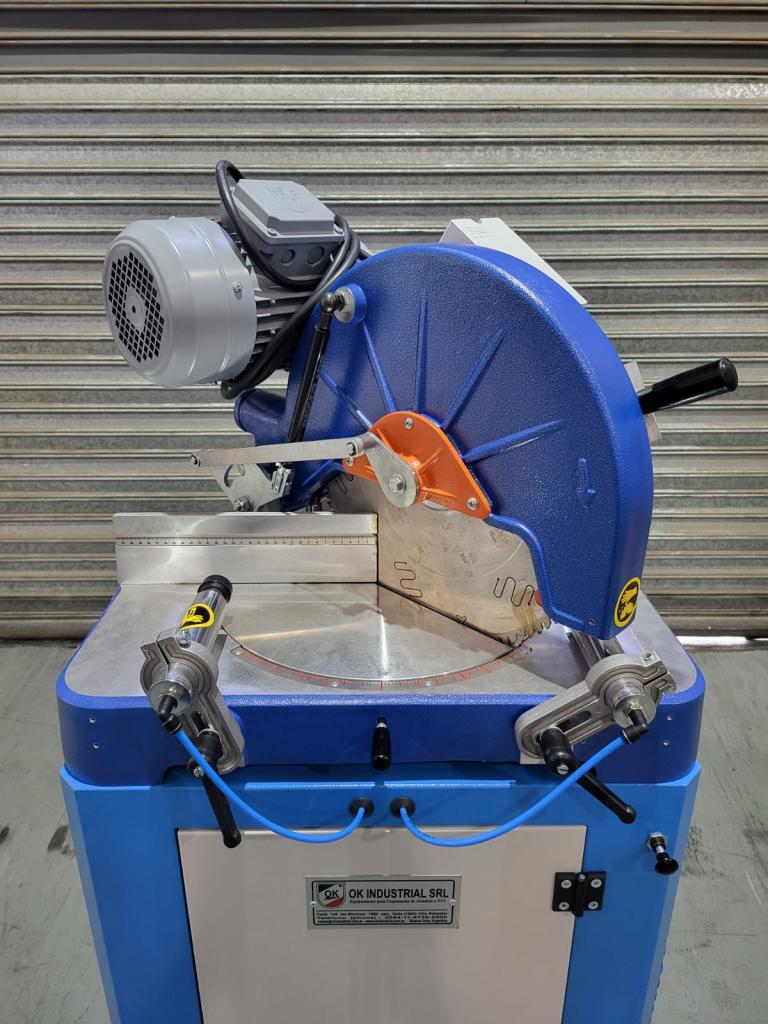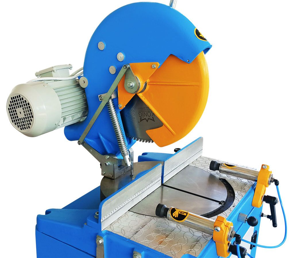 Posibilidad de cortar a 45º en ambos sentidos girando el cabezal de corte, el cual se encuentra montado sobre rodamientos.