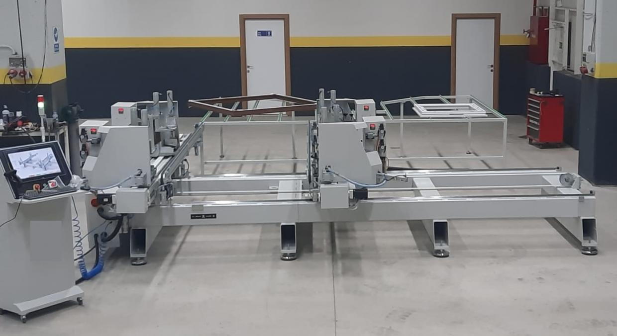 Soldadora de cuatro cabezales para soldar todas las esquinas a la vez en aberturas de PVC.