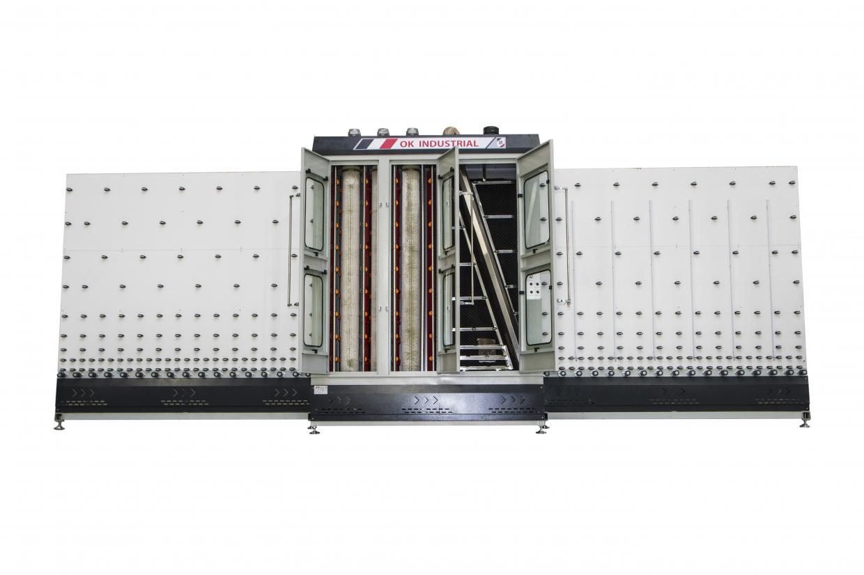 Abierta en su parte superior lo que permite lavar vidrios de hasta el doble de la altura máxima admitida, manteniendo un tamaño de equipo compacto y haciendo más eficiente el uso del espacio de la planta.